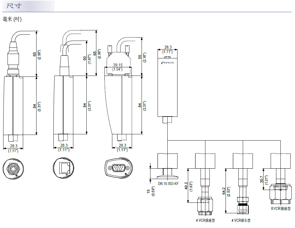 1) 与INFICON 控制器一起使用